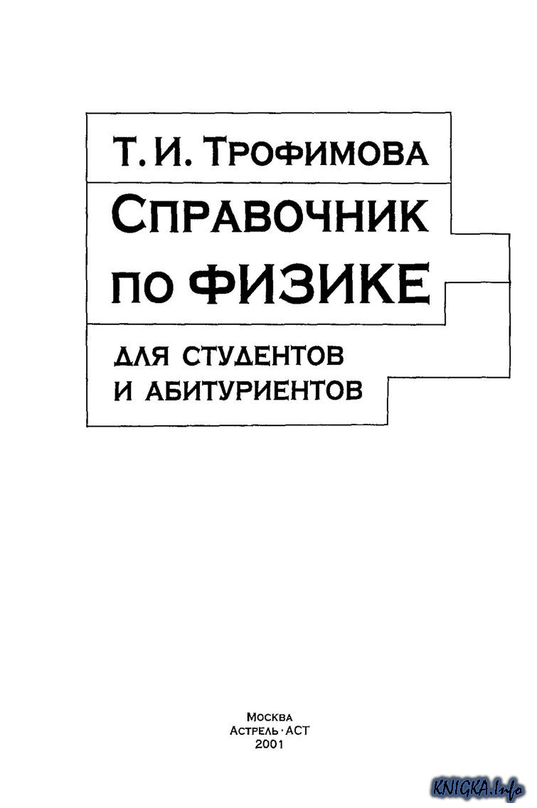 Справочник по физике для студентов и абитуриентов Справочник поможет студентам при подготовке к коллоквиумам, семинарам, зачетам и экзаменам. Он может быть полезен слушателям колледжей, подготовительных отделений и учащихся школ.